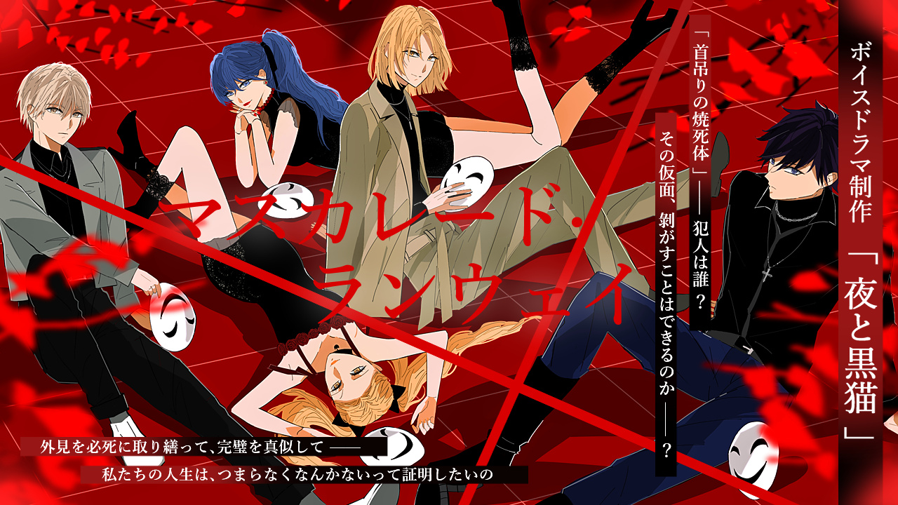 ![]() ボ イ ス ド ラ マ 作 品 第6回ボイスドラマ「マスカレード・ランウェイ」 **特設サイト公開中** http://kuronekoyoruni.iza-yoi.net/bc.html ![]() |
